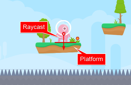 "0.3 두께로 내 위치에서 아래쪽으로 광선을 던지고 1.1 단위 내에서 플랫폼 레이어의 개체에 닿는지 확인한다" 라고 해석할수 있다!